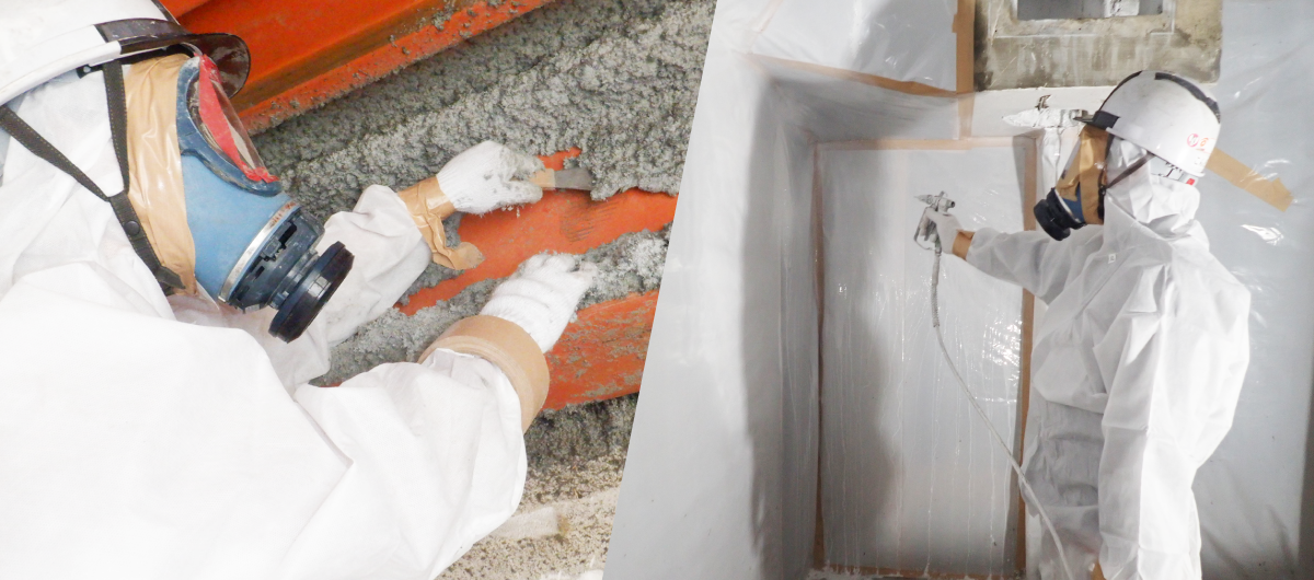 当社の仕事内容は建物を守る仕事であり、言い換えると「人の命」を守る仕事でもあります。人体に悪影響のある石綿を取り除き、飛散防止対策を行うことで建物を安全に利用でき、建物の耐久性能を確保することができます。